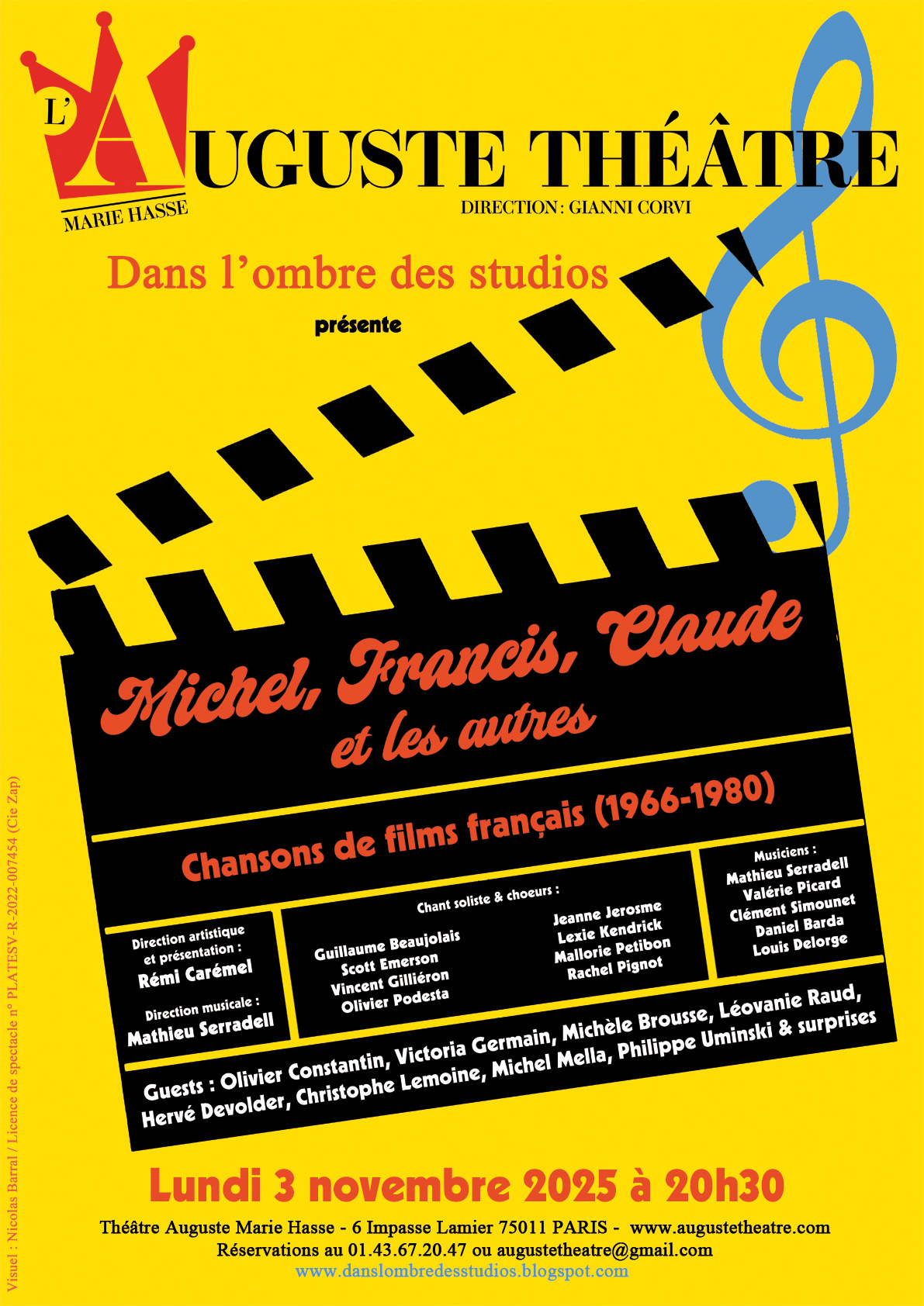 Blog consacré aux comédiens et chanteurs de l’ombre dans les milieux du cinéma et de la musique, « Dans l’ombre des studios » présente son nouveau concert : Michel, Francis, Claude et les autres : Chansons de films français (1966-1980).
